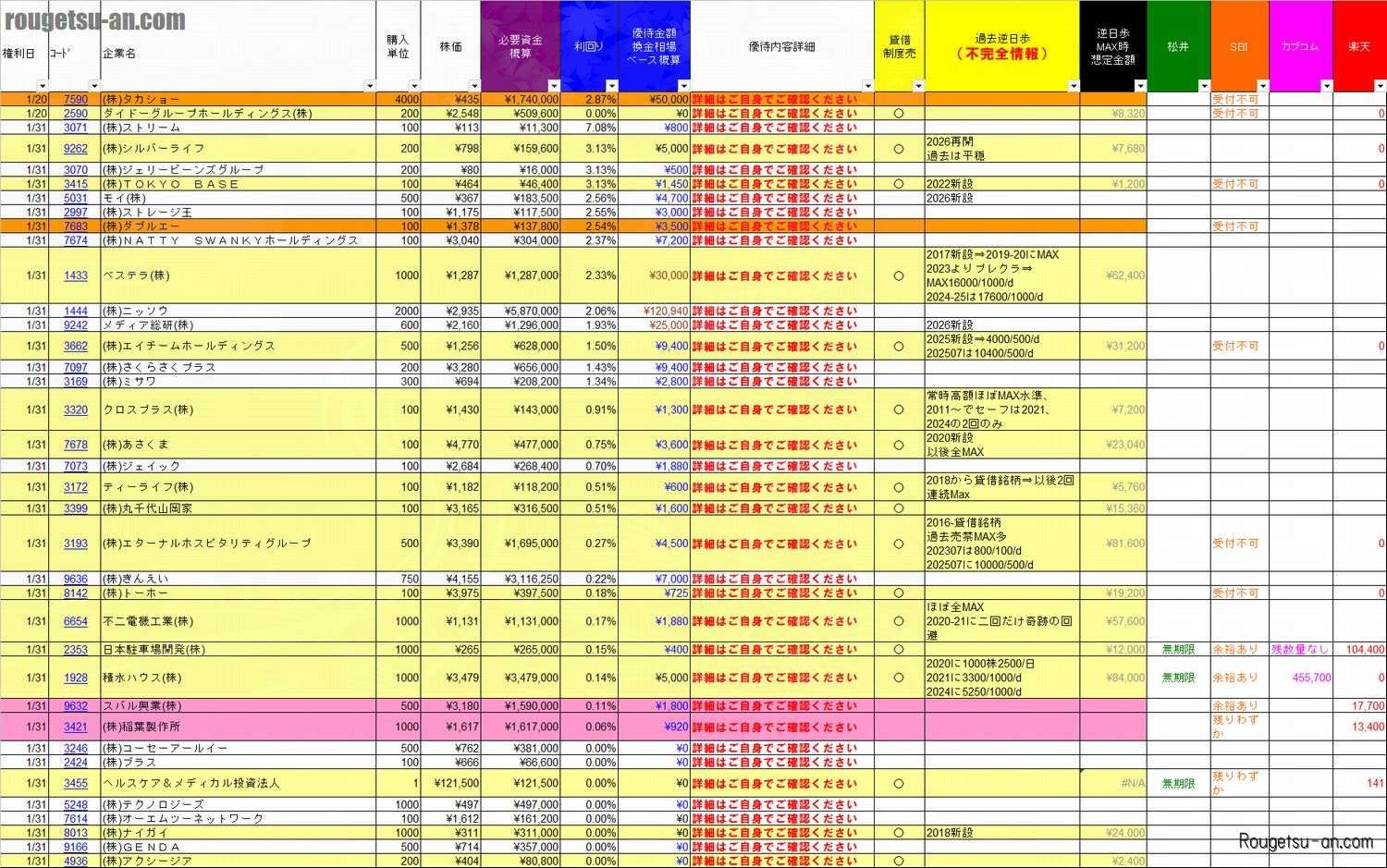 昔に比べればクロス可の銘柄も微かに増してるとはいえ、絶望的に数が少ない上に、1月としては割とまとまった案件だった東京ドームやドクターシーラボ、東京楽天地などの撤退・廃止が痛いこと。