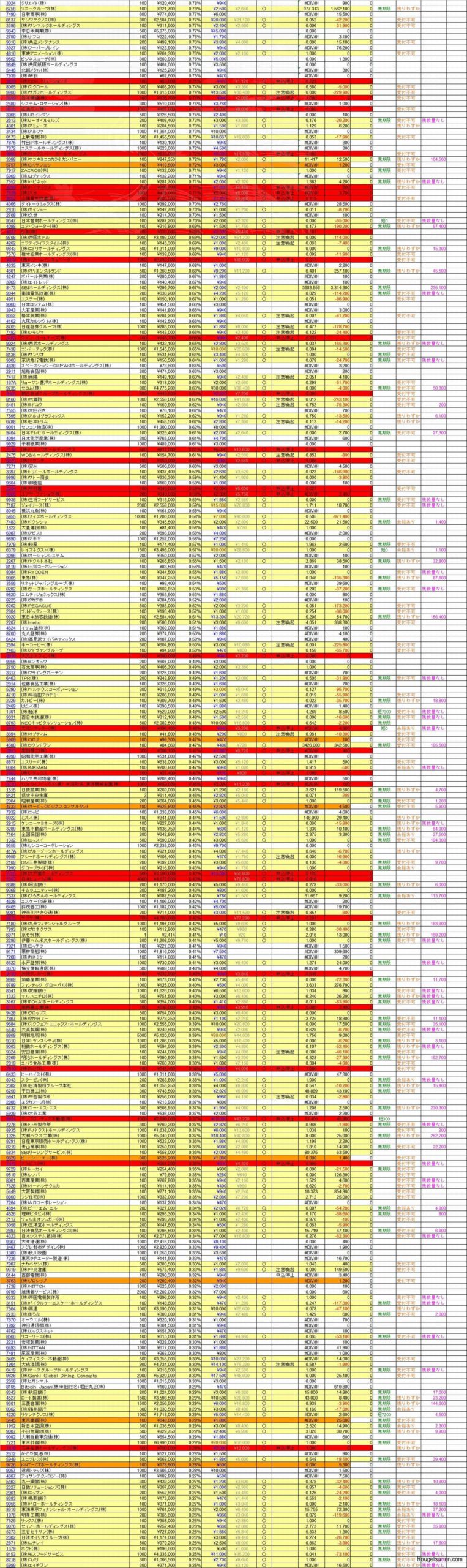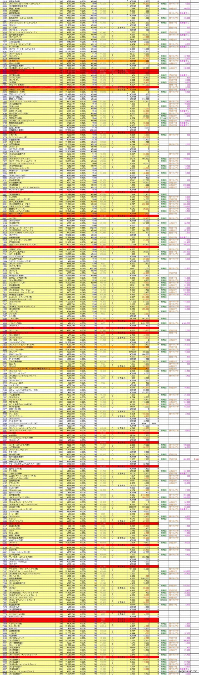 6096レアジョブ、3521テルマー湯、9475昭文社、9788ナック、4765SBIグローバルアセットマネジメント、4923コタ、7769リズム、7096ステムセル研究所、4925ハーバー研究所、3992ニーズウェル、1446キャンディル、6545インターネットインフィニティ、7134アップガレージ、2378ルネサンス、3924ランドコンピュータ、3676デジタルハーツ、6926岡谷電産、3690イルグルム、3178チムニー、7616コロワイド、9633テアトル、7421カッパ・クリエイト、2694焼き肉さかい…とまだまだありますが、まだまだあります。マジでキリが無いのでこの辺まで。