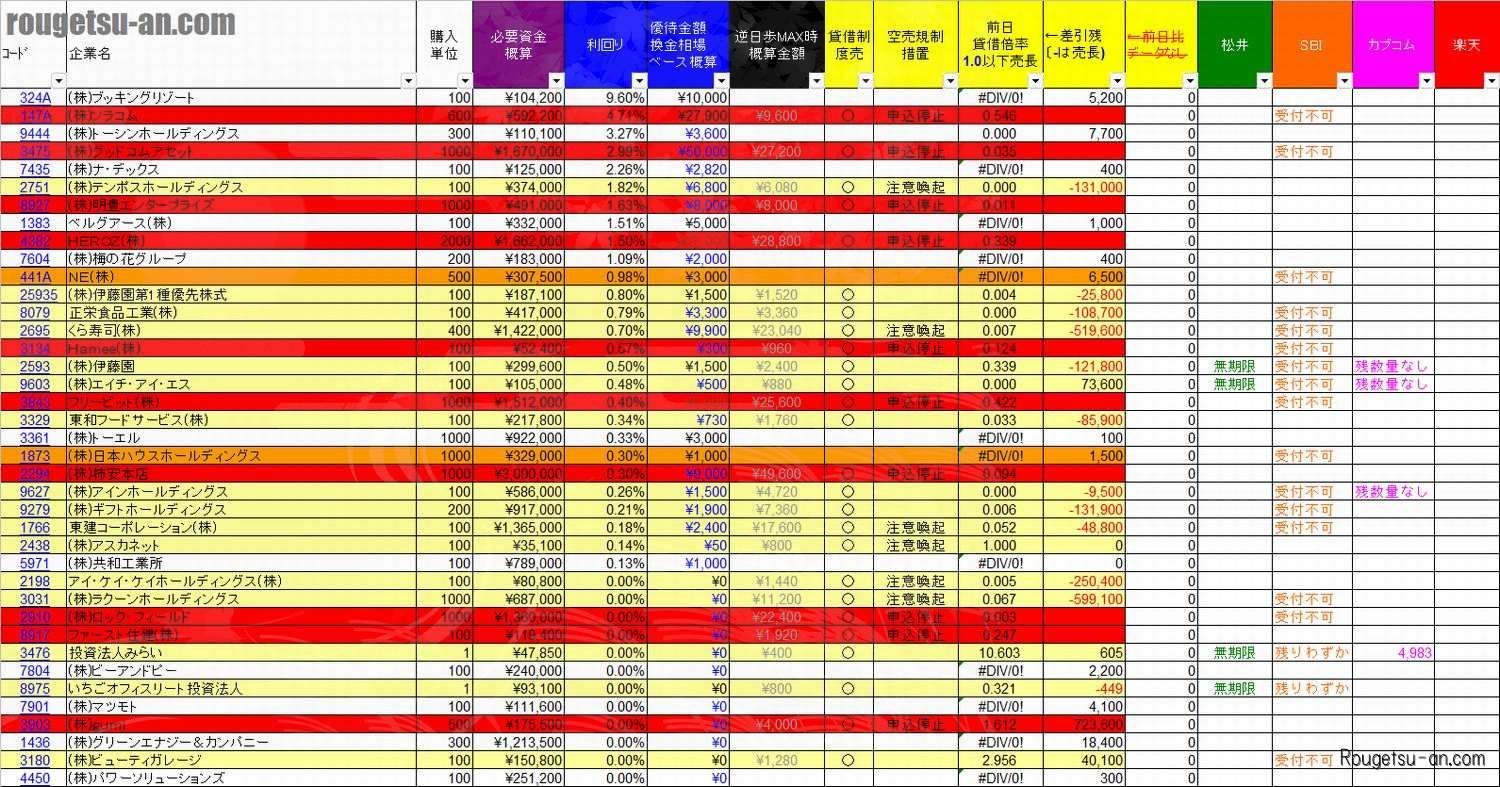 まずは制度売りできる貸借銘柄。万一Max食らっても安全なのは…、なのは……、…
